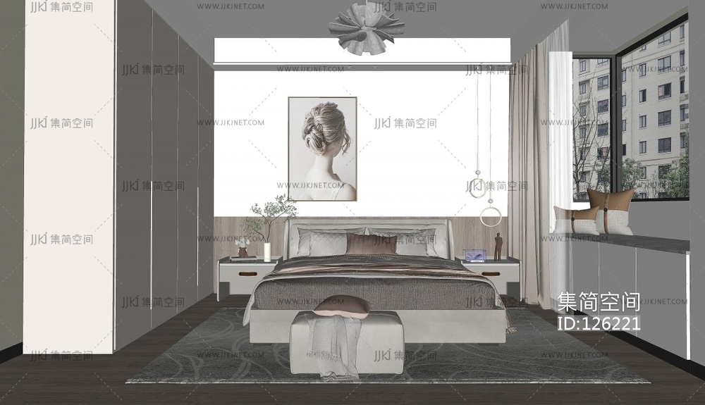 现代卧室 su草图模型下载 [模型ID:126221]