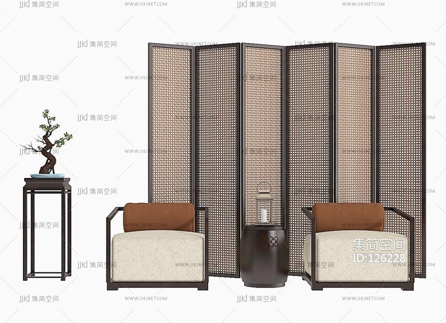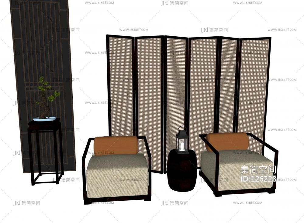 新中式布艺单人沙发 su草图模型下载 [模型ID:126228]