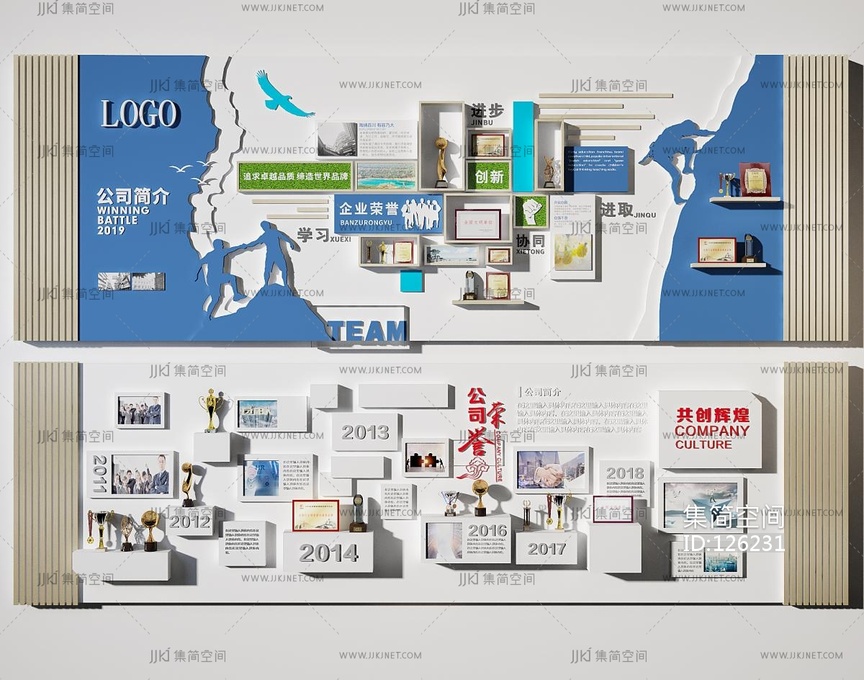 现代企业文化墙荣誉墙墙绘 3d模型下载 [模型ID:126231]