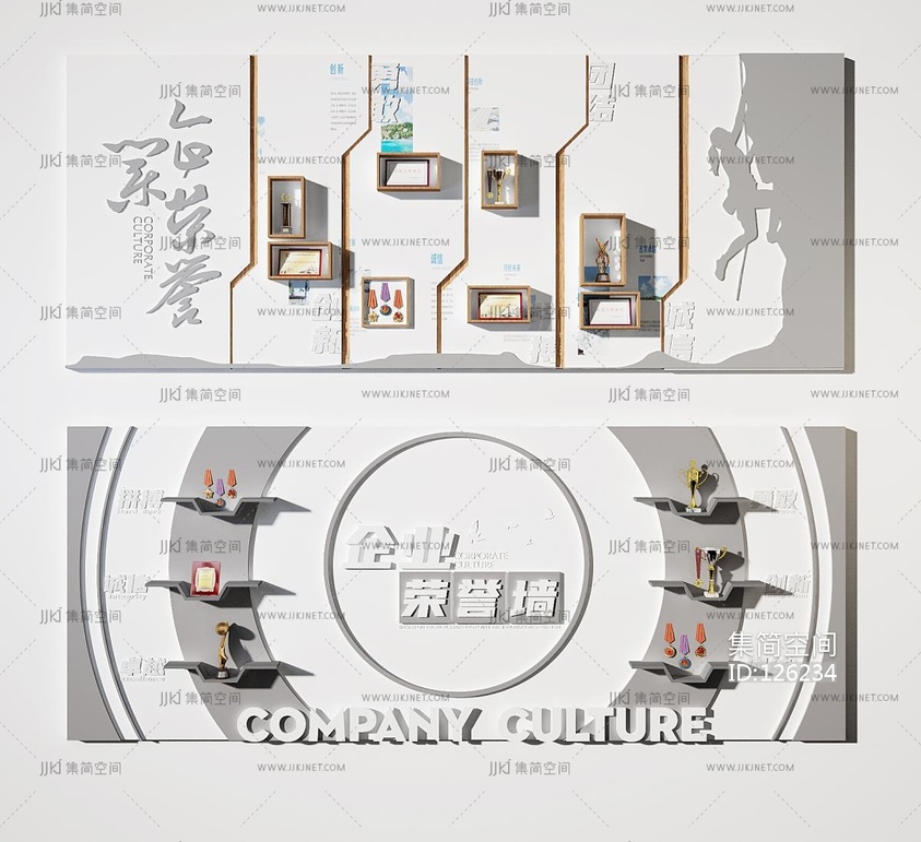 现代荣誉墙企业文化墙奖杯奖状 3d模型下载 [模型ID:126234]
