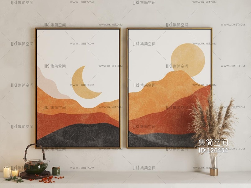 现代日月群山艺术挂画 3d模型下载 [模型ID:126454]