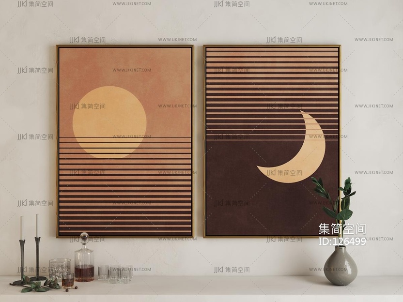 现代日月组合艺术挂画 3d模型下载 [模型ID:126499]