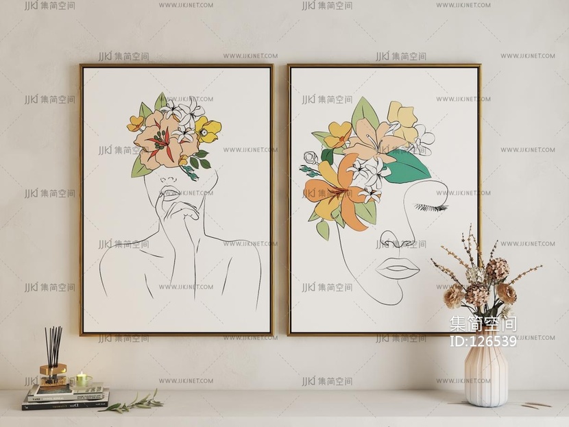 现代女性肖像挂画 3d模型下载 [模型ID:126539]