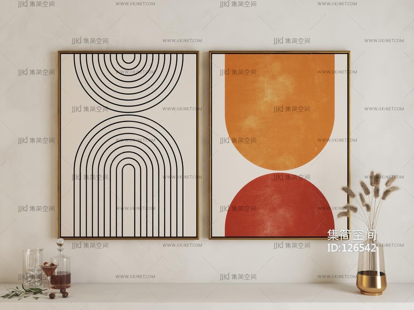 20现代极简几何图案挂画 3d模型下载 [模型ID:126542]