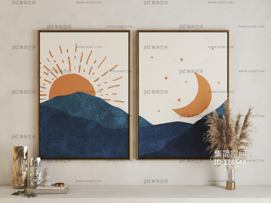 现代日月群山艺术挂画 3d模型下载 [模型ID:126548]