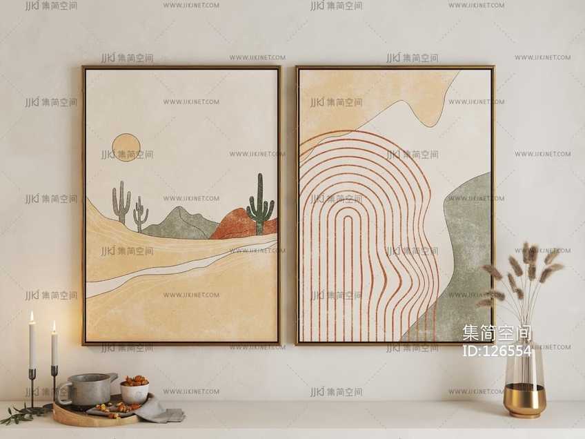 中古风抽象装饰画3d模型下载