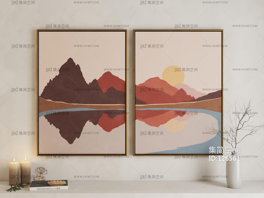 现代风景剪影艺术挂画 3d模型下载