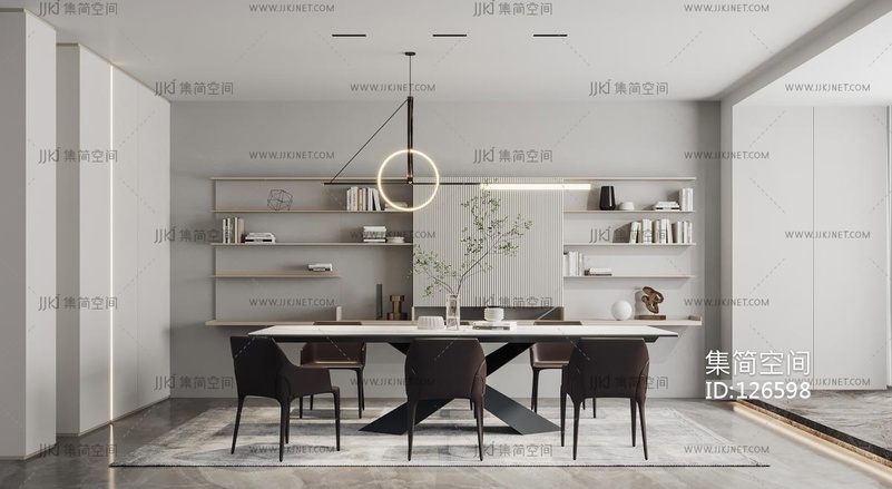 现代书房 书桌椅 壁柜 挂画 吊灯 书 盆栽 摆件3d模型下载