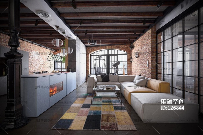 美式 重工业客厅 3d模型下载 [模型ID:126844]