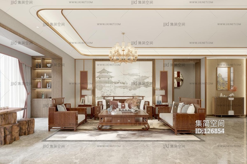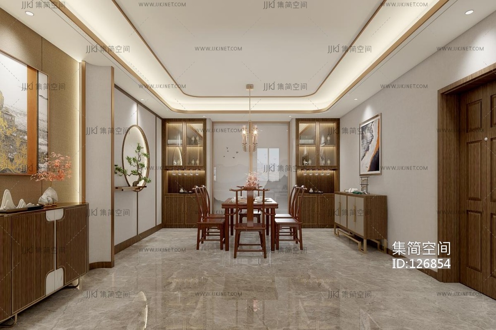 新中式客餐厅 3d模型下载 [模型ID:126854]