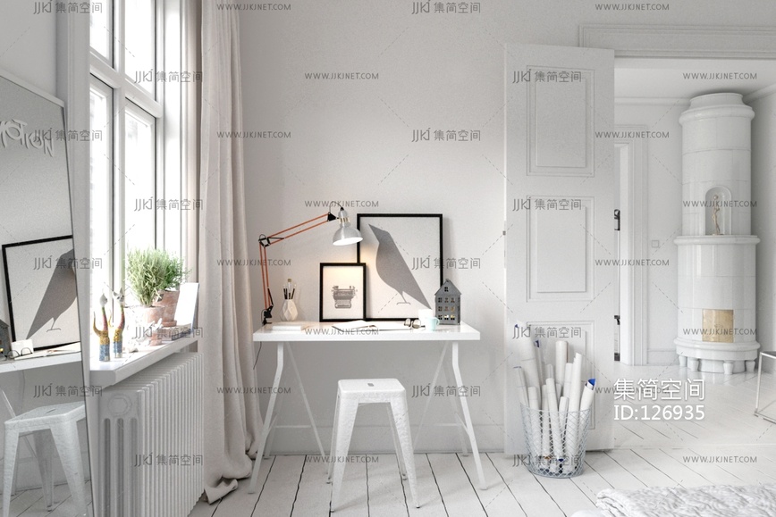现代书房,书桌椅,书柜亚克力座椅,3d模型下载