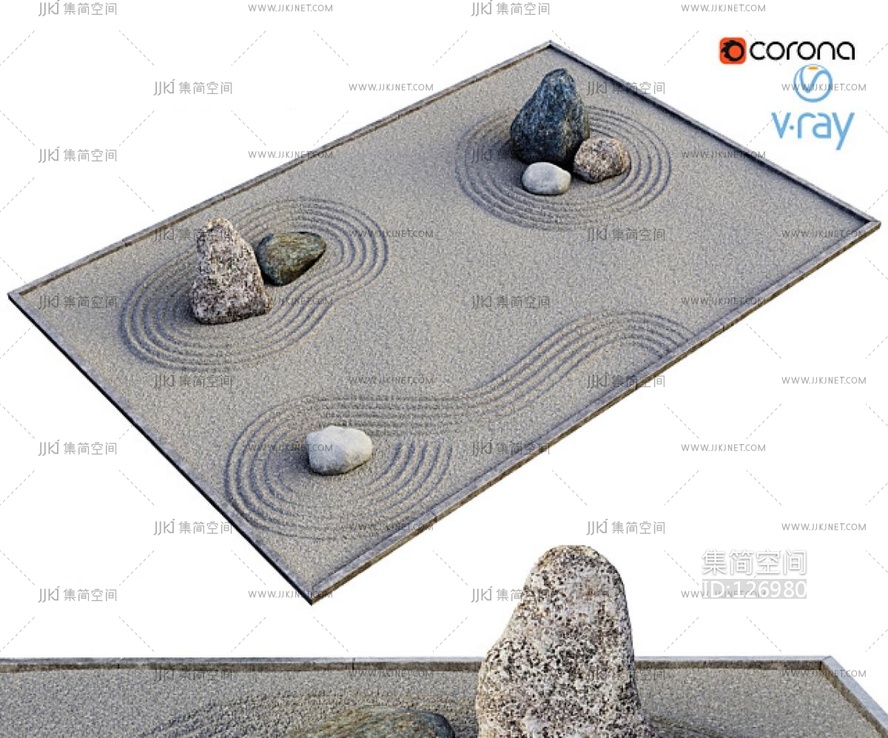 新中式枯山水景观 3d模型下载 [模型ID:126980]