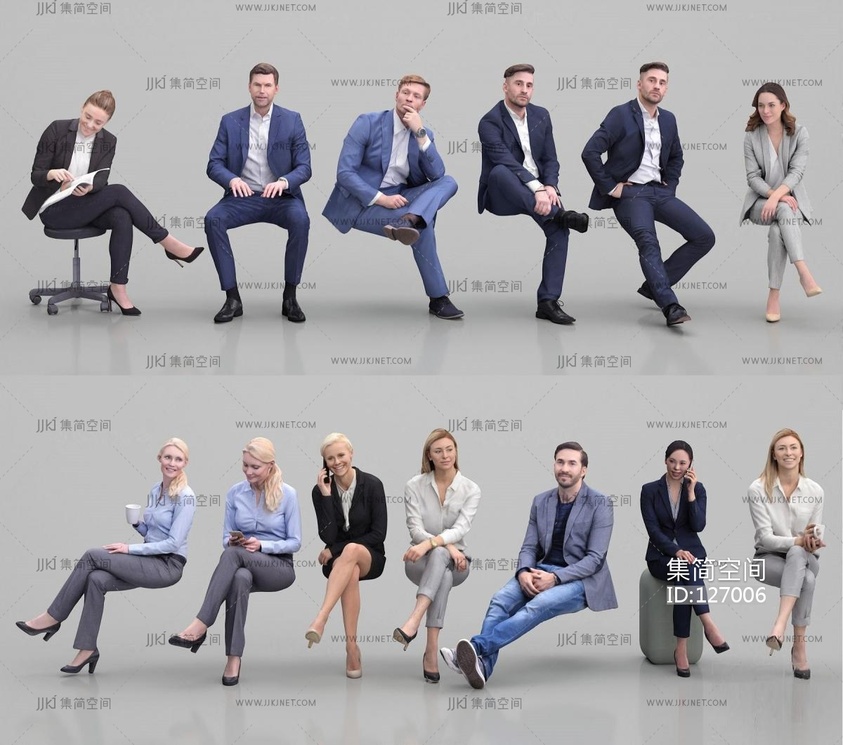现代坐姿商务男女人物模型 3d模型下载 [模型ID:127006]