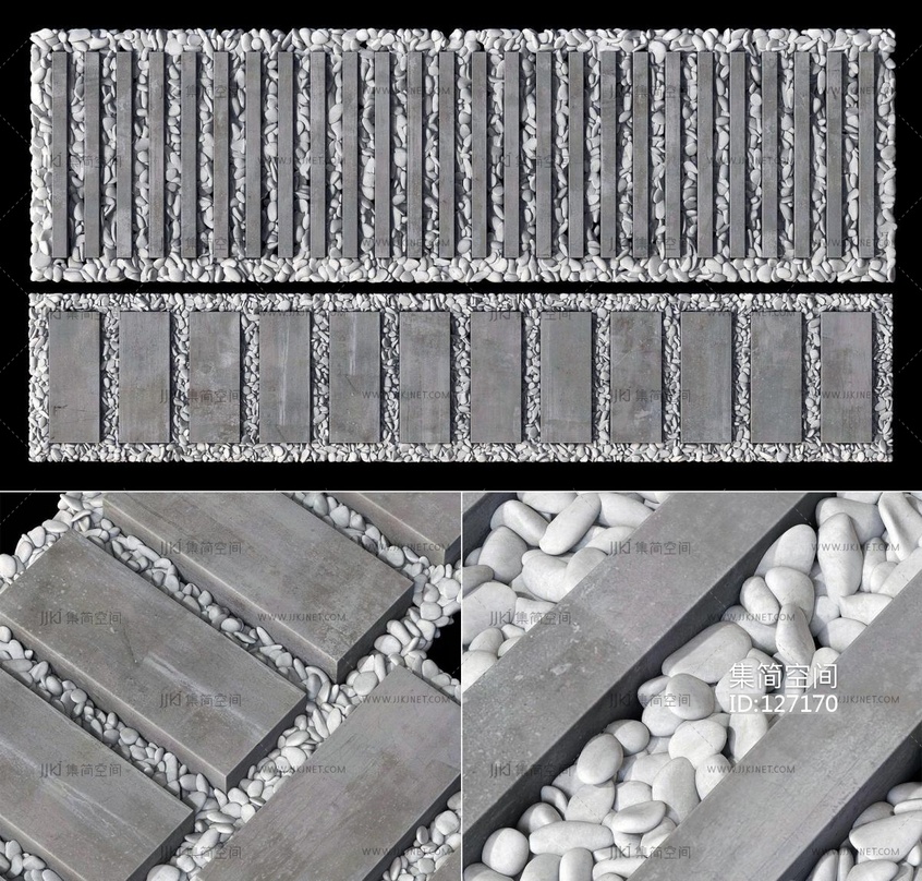 新中式石头铺装鹅卵石石仔园林铺装_ 3d模型下载 [模型ID:127170]