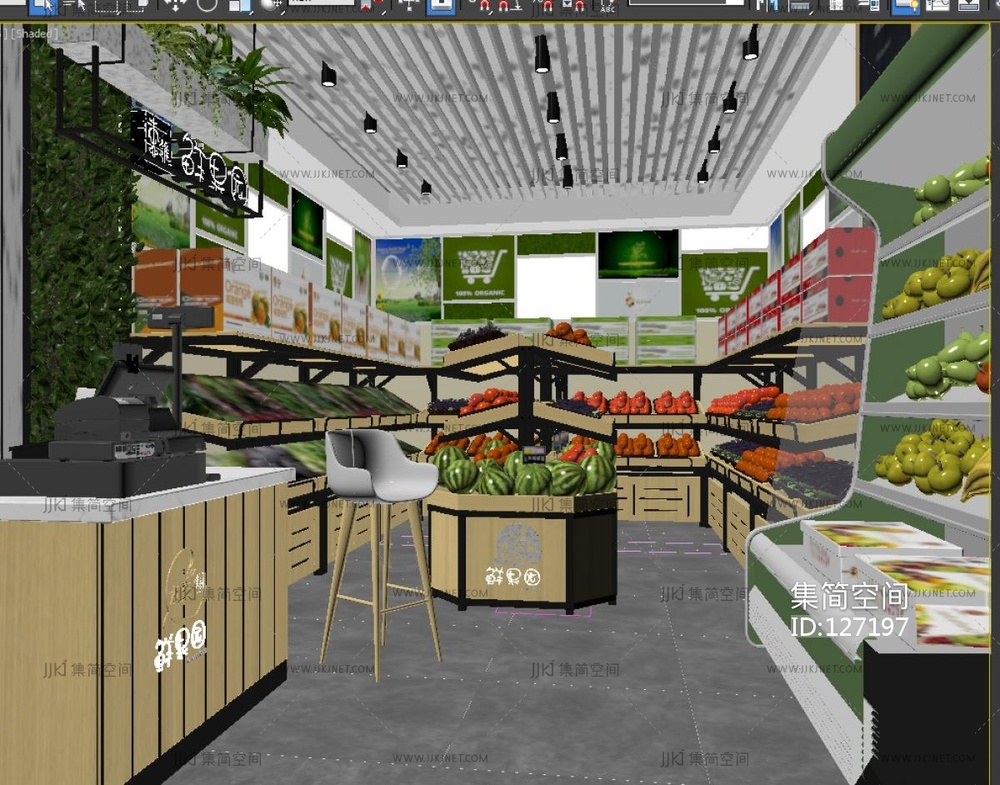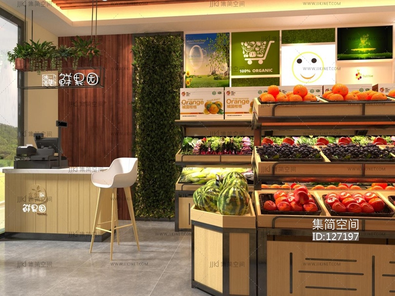 02-现代水果生鲜超市水果展台,展架货柜货架 3d模型下载 [模型ID:127197]