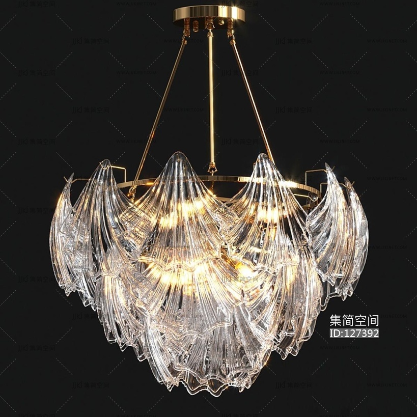 现代玻璃贝壳装饰吊灯水晶灯 3d模型下载 [模型ID:127392]