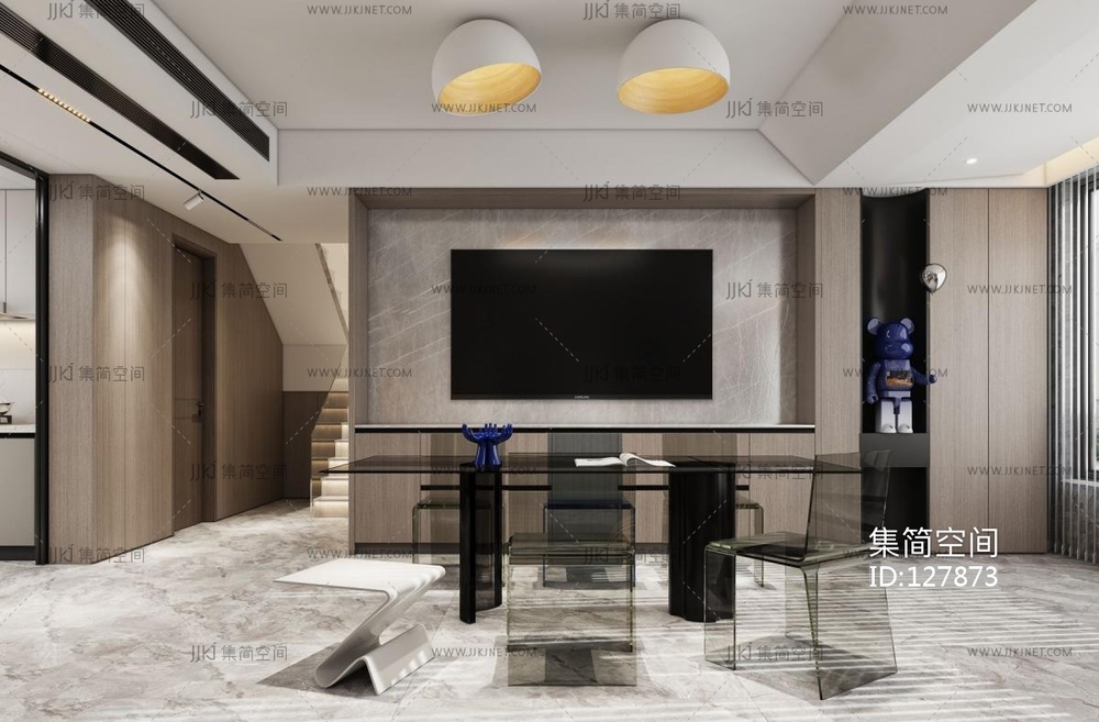 现代客餐厅,沙发茶几厨房亚克力透明餐桌椅 3d模型下载 [模型ID:127873]