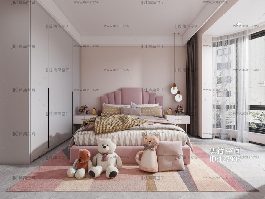 07-现代儿童房,儿童床学习桌-3d模型下载