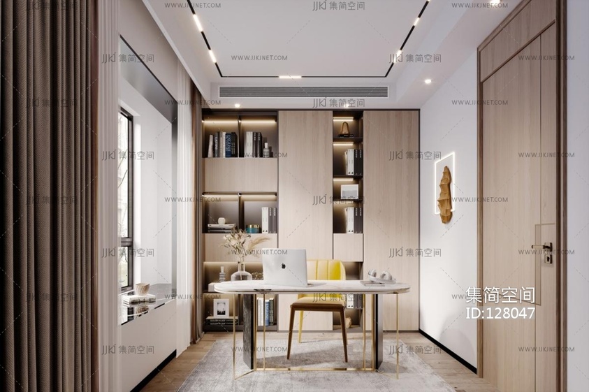 现代书房,书桌椅,书柜亚克力座椅,3d模型下载