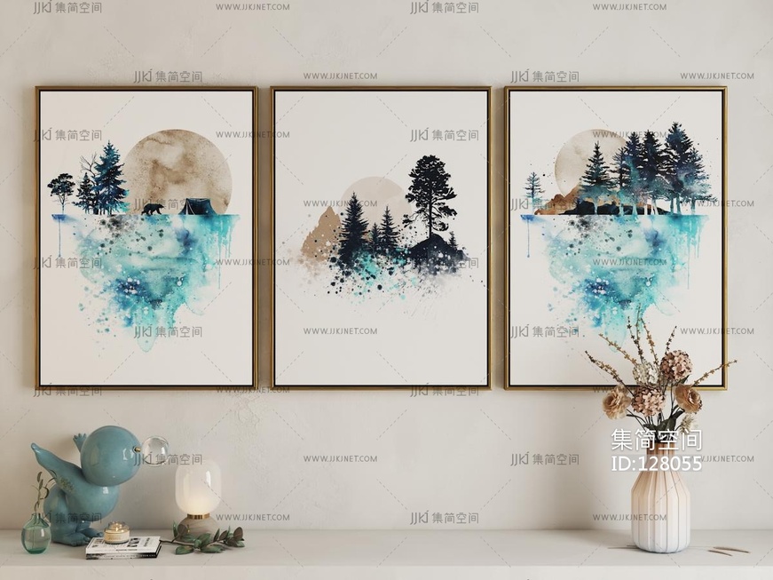 北欧森林群山艺术挂画 3d模型下载 [模型ID:128055]