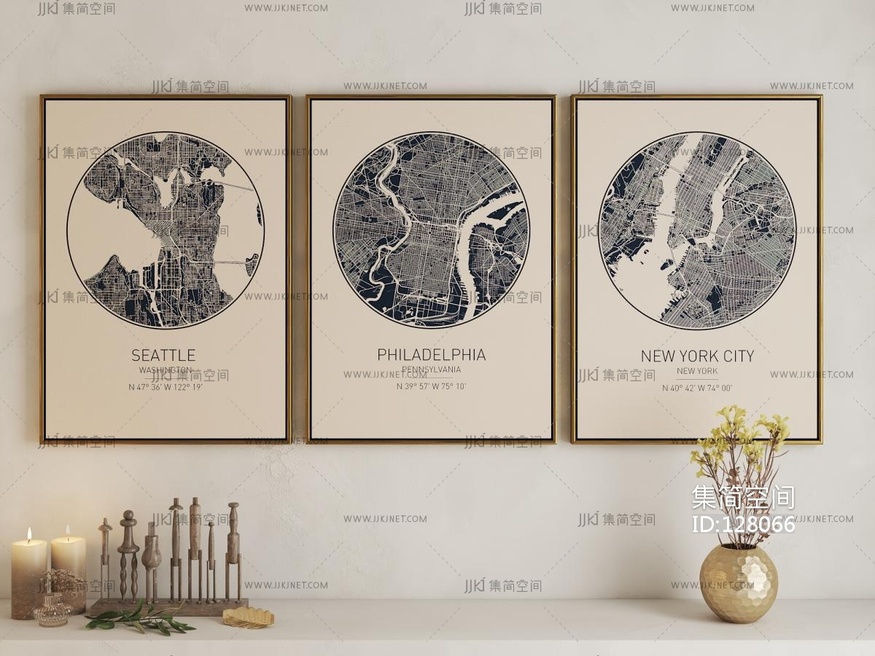 现代城市地图艺术挂画 3d模型下载 [模型ID:128066]