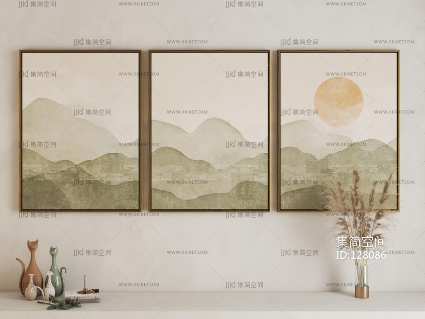 北欧日月群山艺术挂画 3d模型下载 [模型ID:128086]
