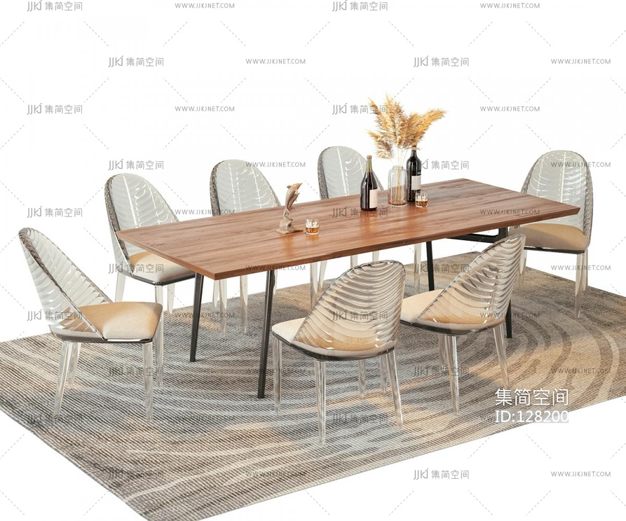 现代欧式亚克力透明餐桌椅 3d模型下载 [模型ID:128200]