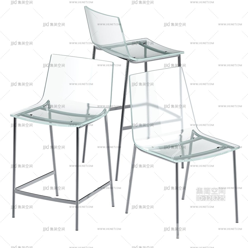 现代亚克力透明吧椅 3d模型下载 [模型ID:128225]
