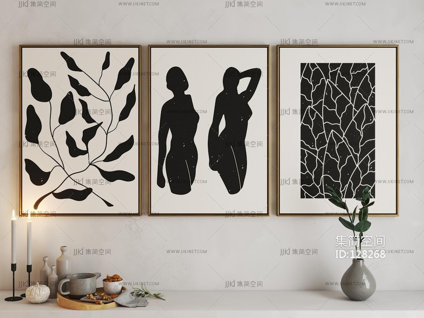 中古风抽象装饰画3d模型下载