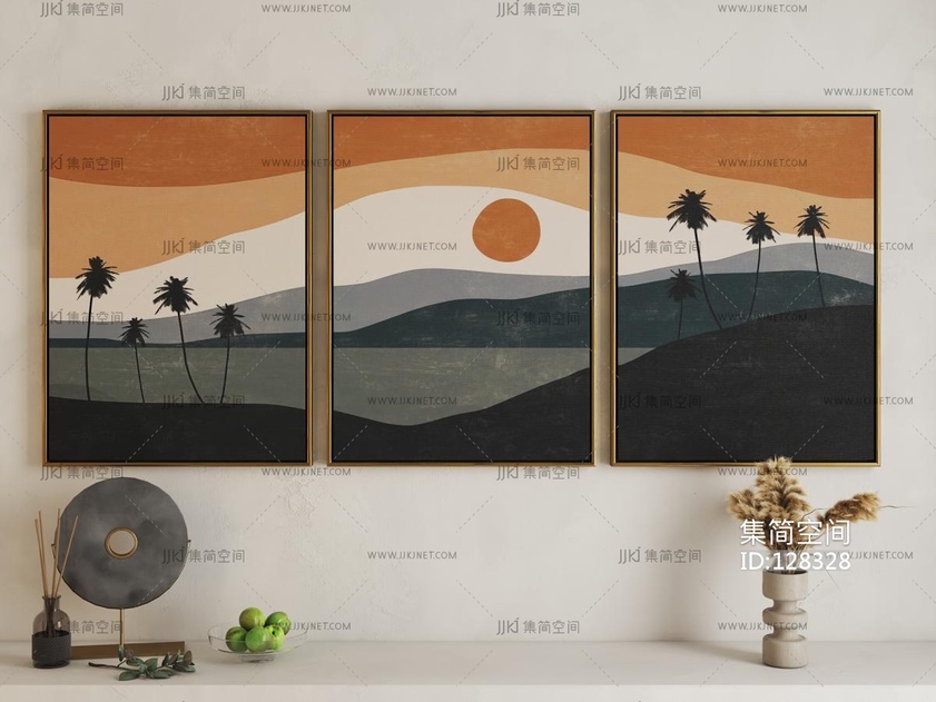 北欧日月群山艺术挂画 3d模型下载 [模型ID:128328]