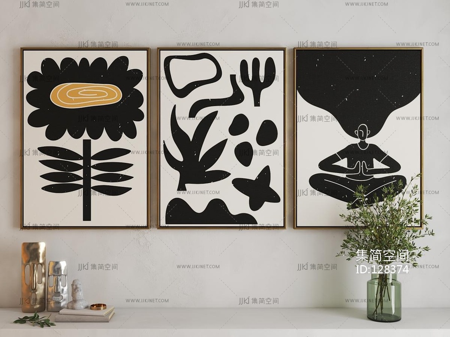 中古风抽象装饰画3d模型下载