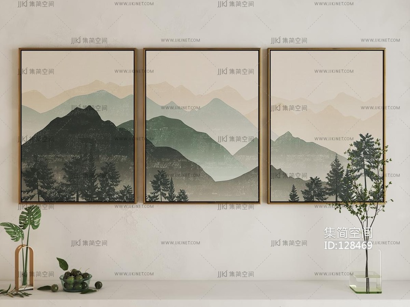 北欧云海群山艺术挂画 3d模型下载 [模型ID:128469]