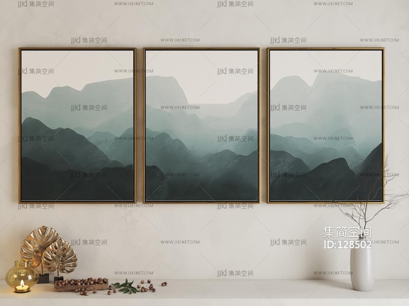 新中式云海群山挂画 3d模型下载
