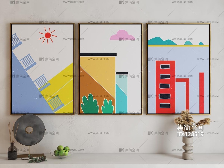 现代活力卡通海报挂画 3d模型下载 [模型ID:128519]