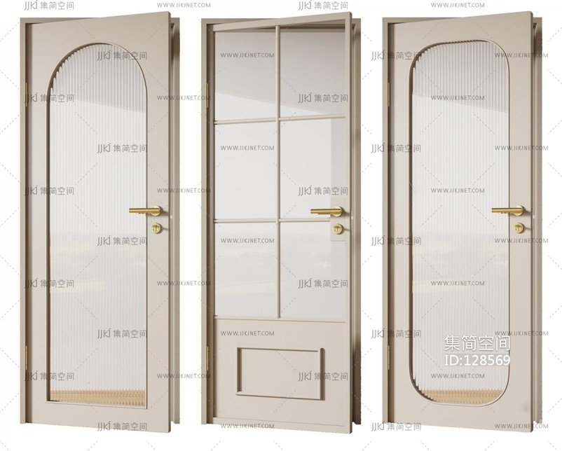 奶油简约双开门_玻璃门_厨房门_阳台门_双开门3D模型3d模型下载