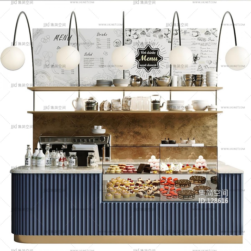 现代咖啡厅蛋糕店甜品店吧台 3d模型下载 [模型ID:128616]