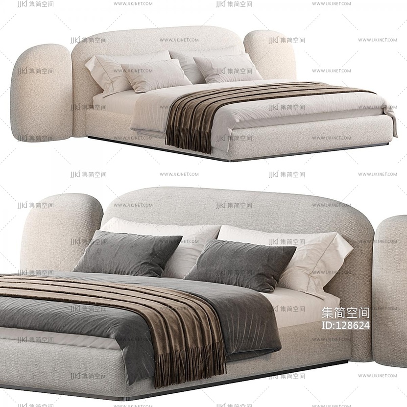 03-ITALINI现代布艺双人床3D模型3d模型下载