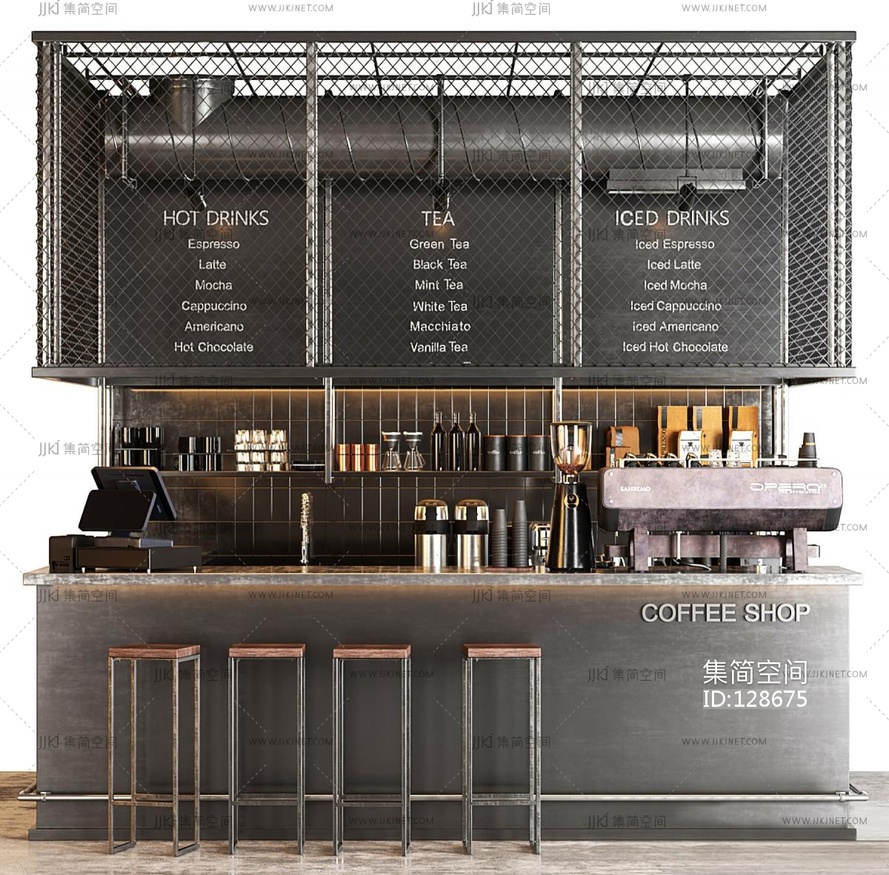 现代咖啡厅吧台 3d模型下载 [模型ID:128675]