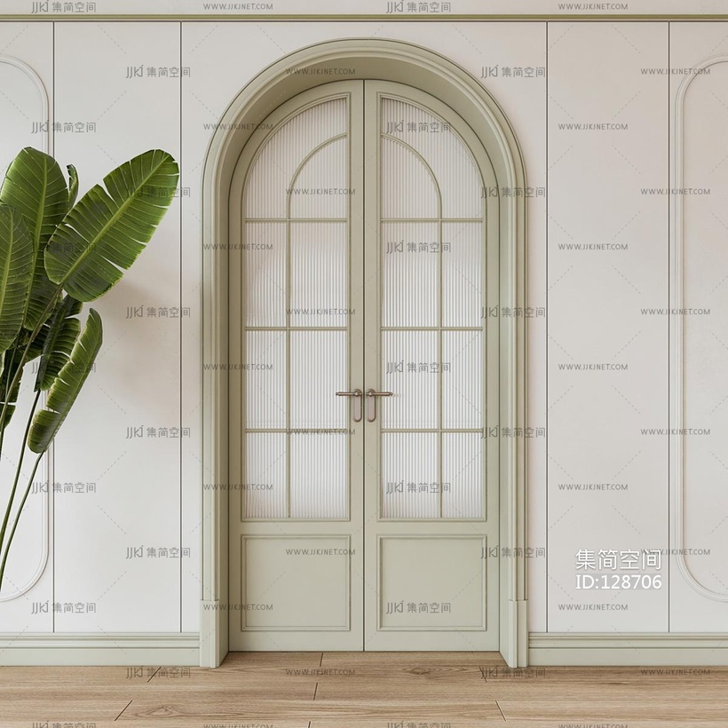 奶油简约双开门_玻璃门_厨房门_阳台门_双开门3D模型3d模型下载