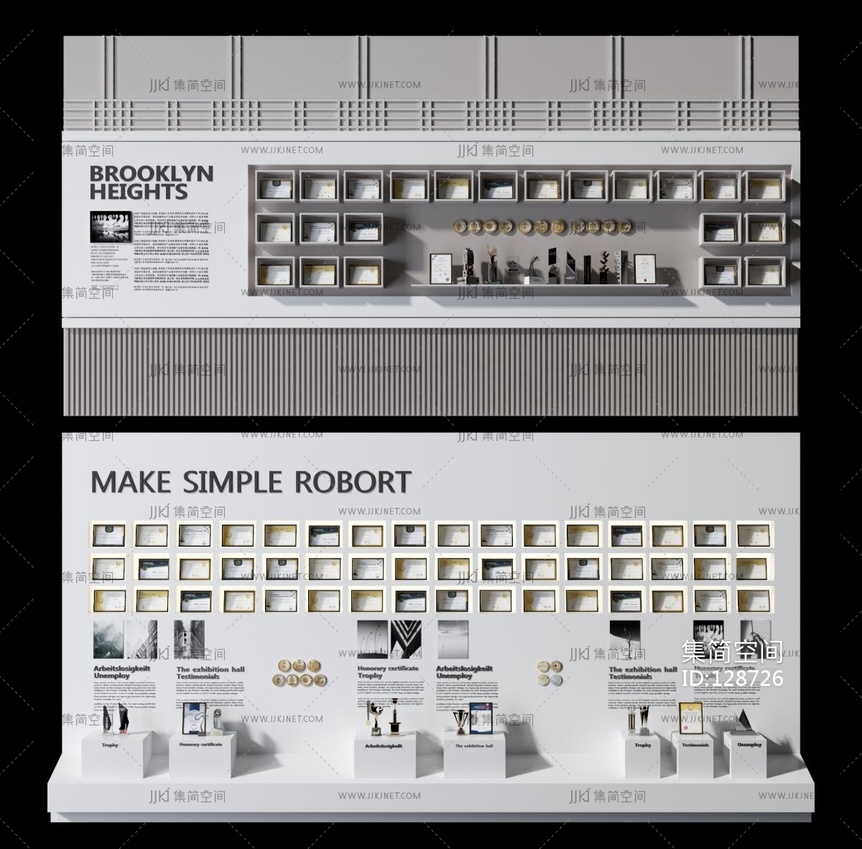 现代荣誉墙展示墙文化墙,奖状将本 3d模型下载 [模型ID:128726]