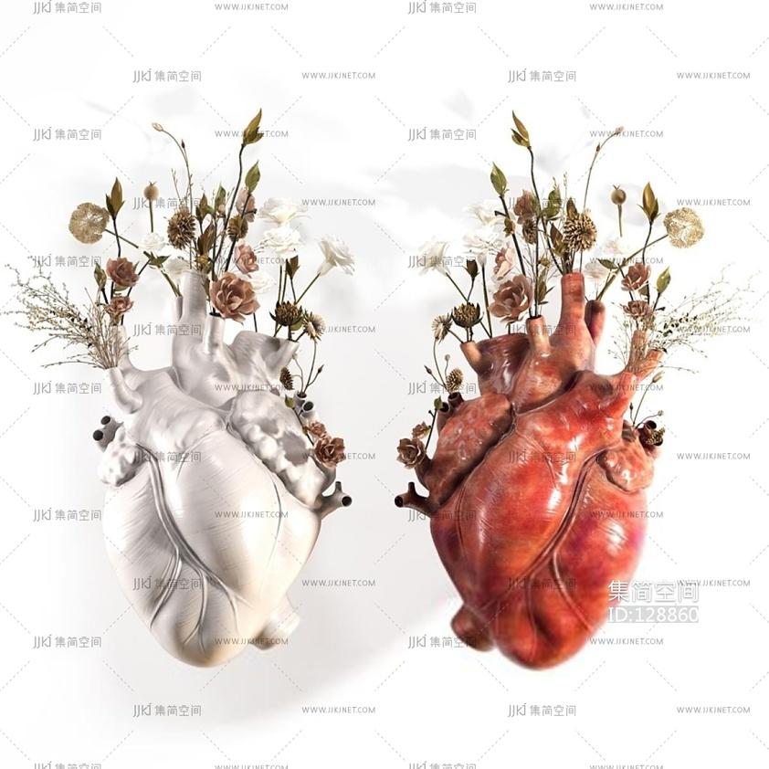 墙心花瓶,心脏造型花瓶 3d模型下载 [模型ID:128860]