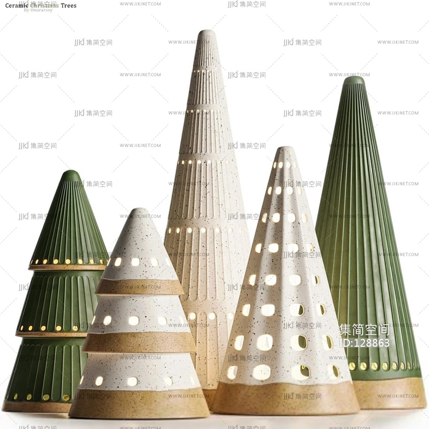 陶瓷圣诞树装饰套装饰品摆件 3d模型下载 [模型ID:128863]