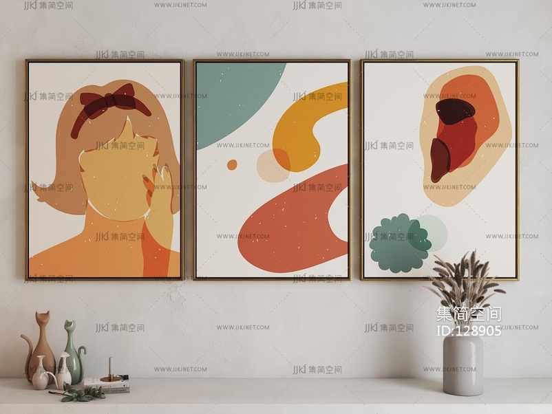 中古风抽象装饰画3d模型下载