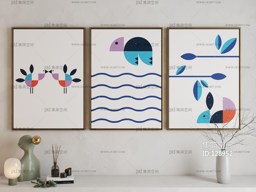 现代活力卡通海报挂画 3d模型下载 [模型ID:128952]