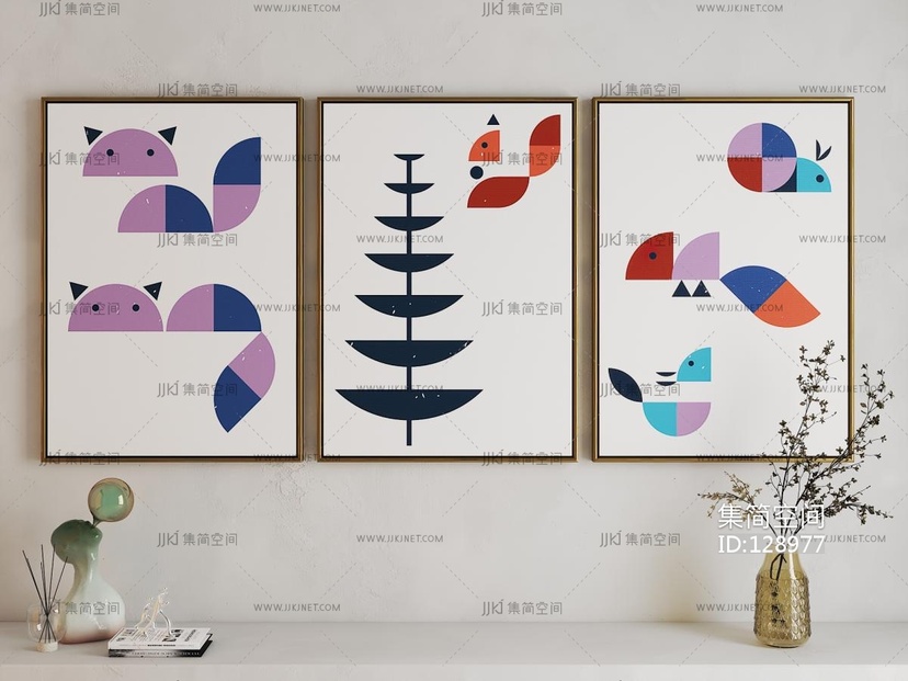 现代活力卡通海报挂画 3d模型下载 [模型ID:128977]