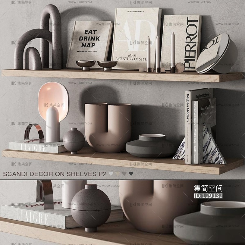 现代装饰品摆件_书籍_花瓶3D模型3d模型下载