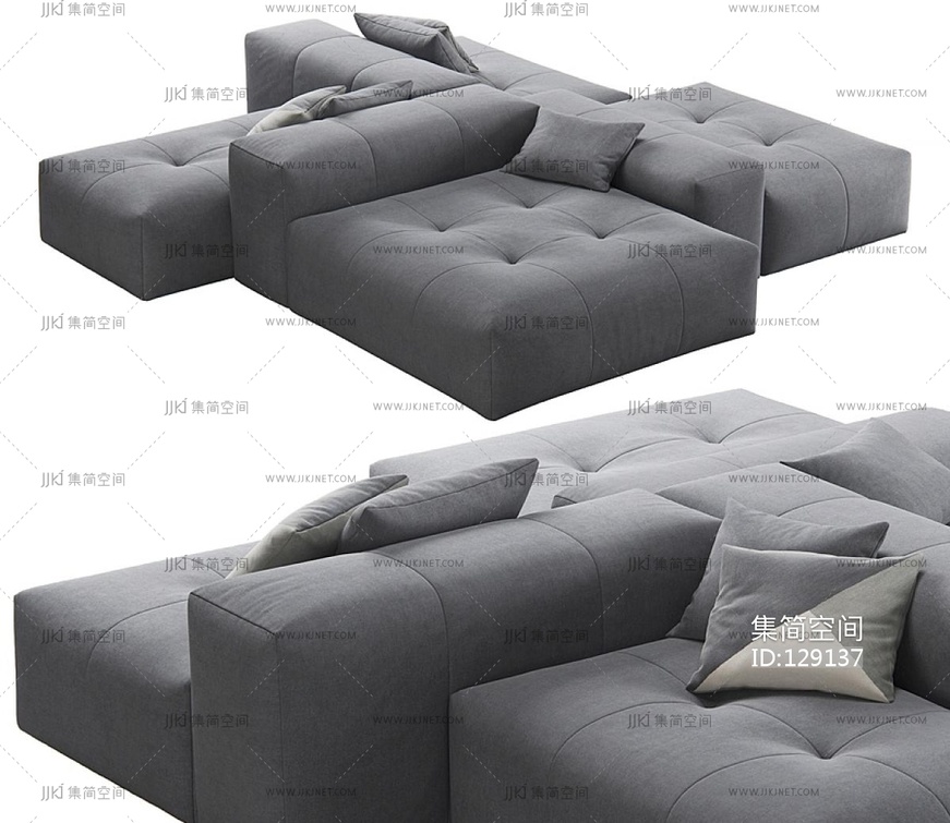 现代沙发三人沙发拼接沙发3D模型3d模型下载