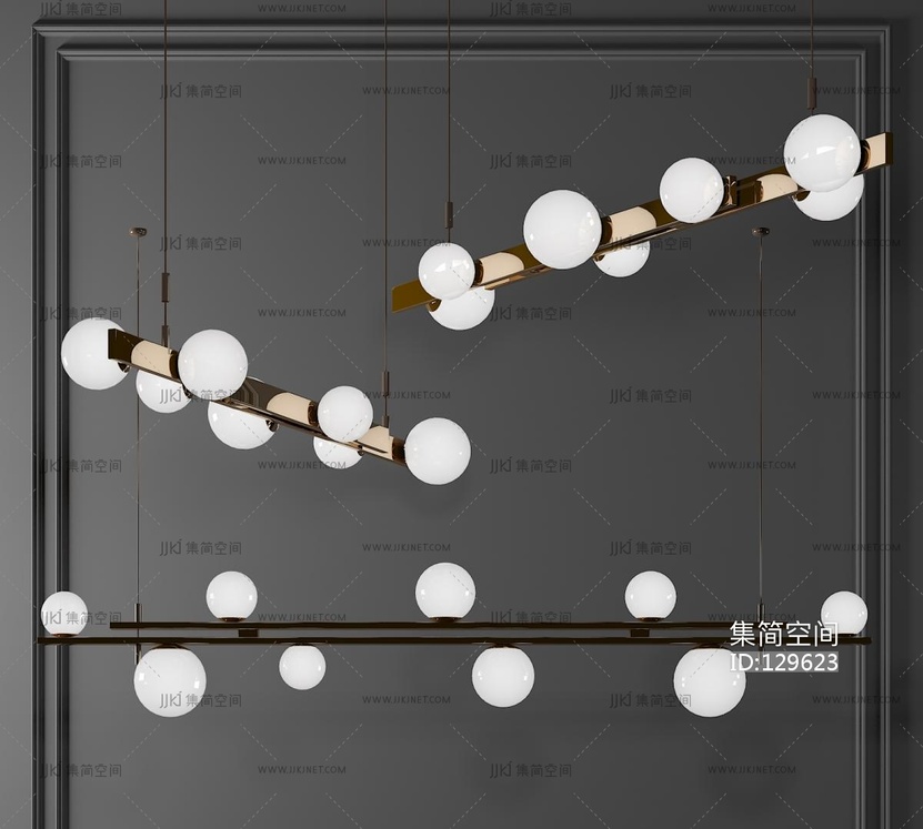 现代金属多头吊灯,球形吊灯 3d模型下载 [模型ID:129623]