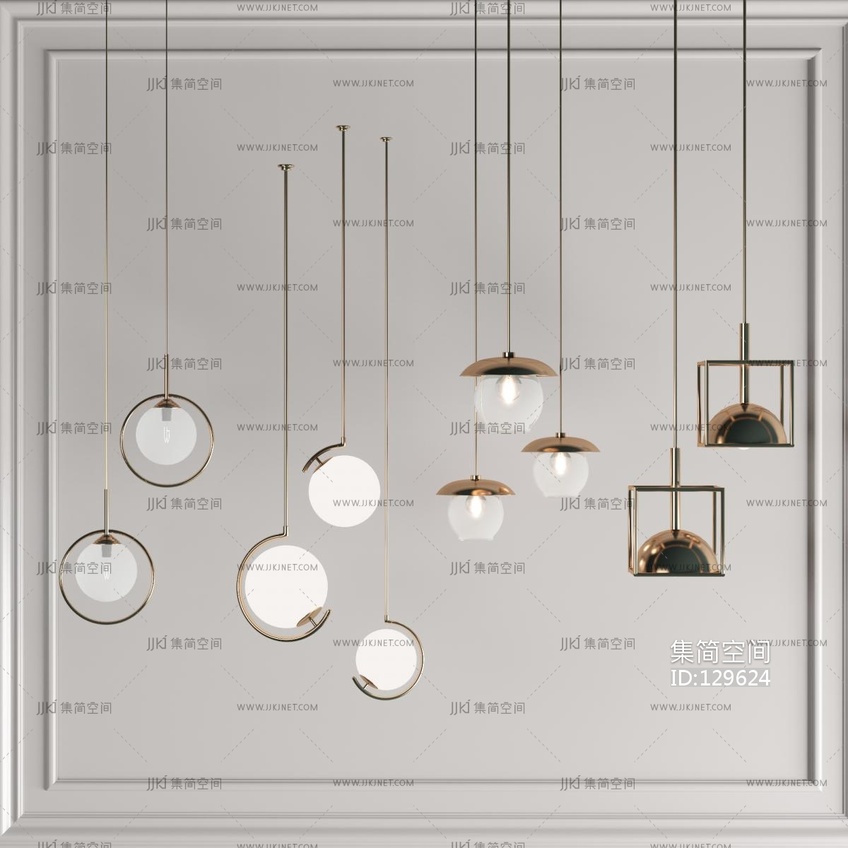 现代轻奢金属小吊灯球形吊灯 3d模型下载 [模型ID:129624]