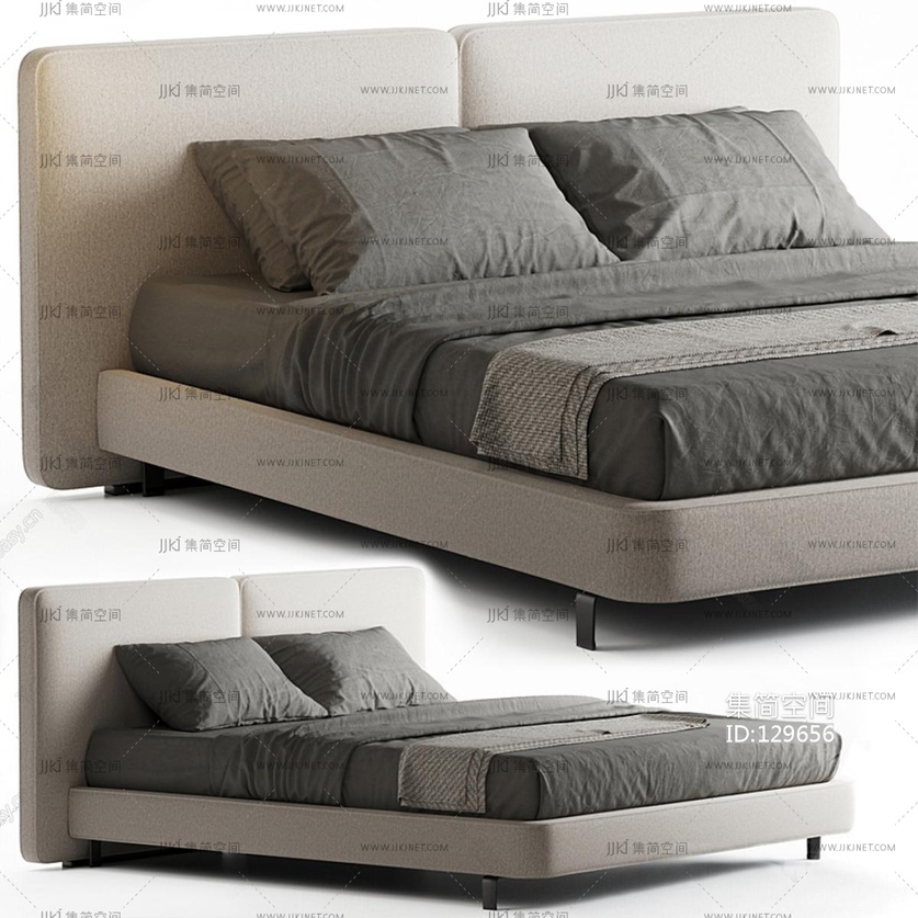 现代双人床 3d模型下载 [模型ID:129656]